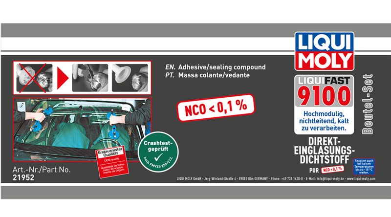 Met Liquifast 9100, de nieuwe ruitenlijm van Liqui Moly, kunnen professionele ruitherstellers werken zonder verplichte opleiding, omdat de lijm minder dan 0,1 procent isocyanaten bevat.