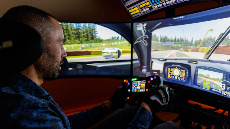 Zodra die vier grote schermen rondom hem aangaan, vergeet Sim-racer Menno Verhorst volledig dat hij op zijn zolderkamer zit. In zijn zelfgebouwde cockpit racet hij met zijn headset op urenlang op het scherp van de snede. Op levensechte circuits, in de virtuele wereld van high-end sim racing. “Als het er écht om gaat, tikt je hartslag zomaar de tweehonderd aan.”