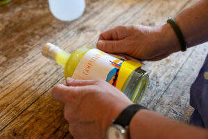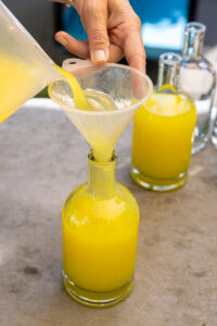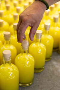 Dus heb ik biologisch onbespoten citroenen afkomstig van boeren uit de Amalfikust laten overkomen en daarmee gingen we aan de slag. Ik zie mij nog zitten om 160 citroenen te schillen. Inmiddels ben ik er handig in, ik schil er nu zo’n zestig per uur. De schillen hebben zeven weken in de alcohol gelegen en toen gingen de vaten naar Weduwe Joustra. Daar hebben we de eerste 110 flessen gebotteld die in no-time waren uitverkocht via de sociale media en aan vrienden, kennissen relaties.”
