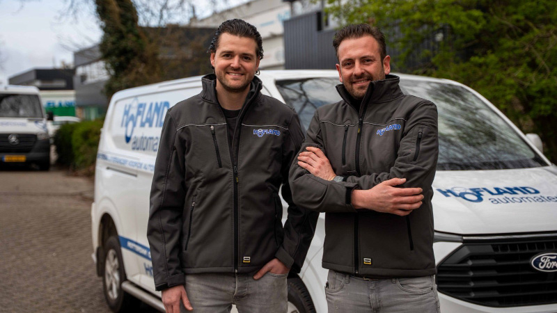 Nick van der Heiden (rechts op de foto) heeft samen met broer Tim de dagelijkse leiding over het vier vestigingen tellende Hofland Automaterialen. Sinds kort zijn zij, samen met hun ouders, verantwoordelijk voor de verdere ontwikkeling van het familiebedrijf.