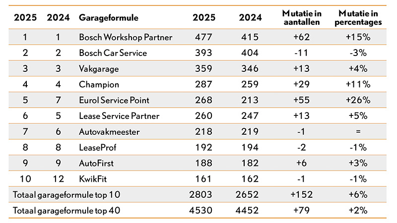 We legden de vraag ook voor aan Clem Dickmann, directeur van het kenniscentrum Aumacon dat jaarlijks een top 50 samenstelt van garageformules. Hij ziet dat de formules aan de bak moeten. Clem Dickmann: “Als er een ding duidelijk is geworden uit de jongste Aumacon Garageformule Top-40 dan is het wel dat de ongebreidelde groei die de universele formules doormaakten nu echt tot bedaren is gekomen. Er is zelfs sprake van een lichte daling van het aantal vestigingen van de 20 universele formules die ons land rijk is. Samen hadden ze per midden dit jaar 2272 aangesloten vestigingen. Een jaar eerder waren dat er nog 2364, een daling van 4 procent.”