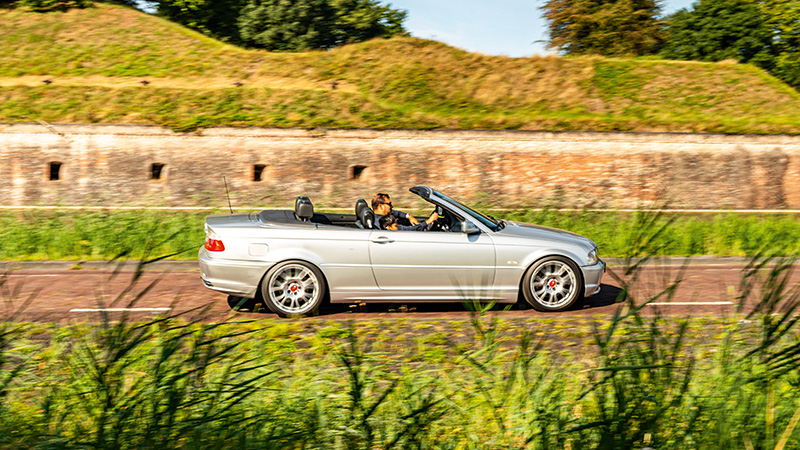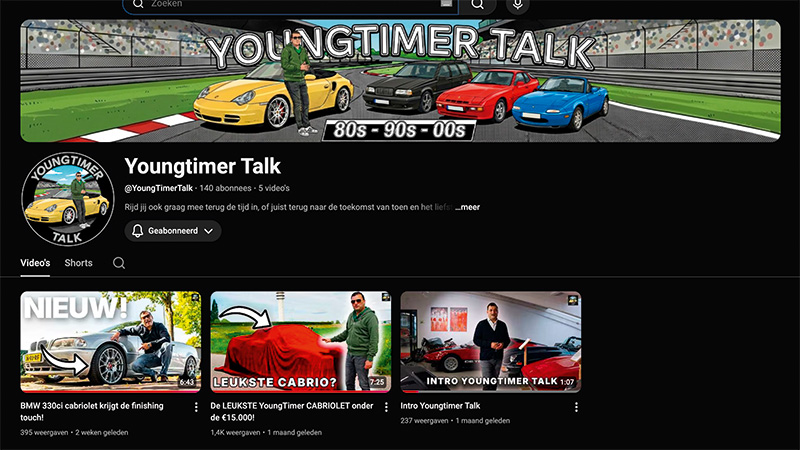 “Van moderne, razendsnelle auto’s loop ik evenmin warm. Toen mijn vrouw haar BMW 435i cabriolet, voor meer ruimte, inruilde voor een Porsche Macan Turbo, bood deze SUV mij geen spatje rijplezier. De drang naar een rauwe rijervaring bracht mij uiteindelijk terug naar de basis: een BMW E46 330i cabriolet. Deze aankoop veranderde alles. De auto bood mij exact de perfecte combinatie van analoge techniek, de onmiskenbare geur van geurig BMW-leer en een heerlijk stuurgevoel. Ongekend rijplezier is juíst te vinden in het bereikbare segment waar mijn generatie mee opgroeide. Hier komt bij, omdat het geen onbetaalbaar museumstuk betreft, geniet ik er ook nog eens stressvrij van. Schijnt de zon, dan gaat het dak direct open. Wordt de auto vies, dan rijd ik hem zonder schuldgevoel door de wasstraat. Het is pure lol voor een zachte prijs. Tijdens ritten in de E46 ontstond het idee om mijn enthousiasme vast te leggen. Ik merkte dat het internet overspoeld wordt met video’s over supercars of klassiekers. Het bereikbare – en leuke! – segment daartussen, blijft zwaar onderbelicht. Met Youngtimer Talk vul ik precies die leegte. Ik wil aan de kijker bewijzen dat je echt geen auto van een ton hoeft te bezitten om maximaal te genieten.”
