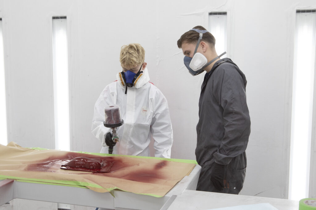 Benk Kenselaar (20), de jongste autospuiter van de RECO Autoschade Groep, begeleidde de leerlingen met zichtbaar plezier. “Het was leuk om te zien hoe enthousiast ze waren en dat ze echt iets wilden doen. En het is mooi om als jong iemand met passie over ons vak te kunnen praten.”