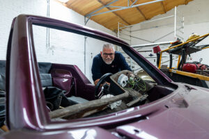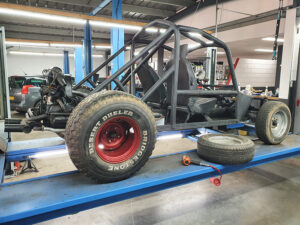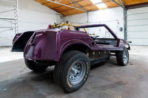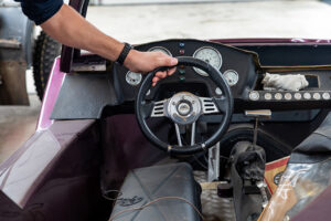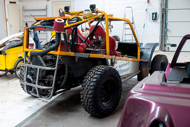 En de Buggy-passie? “Die stopt nooit. Ik ben op dit moment zelfs bezig om in mijn offroad-Buggy een 1900 turbo dieselmotor te leggen, in plaats van het keverblok. Gewoon om te kijken hoe dat gaat en om die power en dat koppel onderin te hebben voor het behendigheidswerk. Wat mijn ultieme buggy is? Dat is een moeilijke vraag. Ik hou van modellen waar er weinig van zijn, zoals deze paarse, mijn eerste, die oorspronkelijk wit was. Dus dan heb je je antwoord al. Ik herinner me nog dat ik hem tussen wat Ferrari’s en Porsches parkeerde en wat denk je, waar keek iedereen naar? Juist, naar mijn Buggy. Als ik ooit de kans krijg om er nog eentje te bouwen, dan moet hij echt grof zijn. Echt zo’n lomp, groot buizenframe, een beetje Big Foot-achtig. Het mooie is dat dit type auto zich nu eenmaal leent voor al die verscheidenheid, de buggy verveelt nooit.”