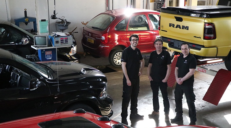 Na altijd aan Europese auto’s gewerkt te hebben ging Hans van Leur zich tien jaar geleden specialiseren in Amerikaanse auto’s, vooral de Dodge Ram, “met dat geweldige V8-geluid” en natuurlijk een automaat, zoals dat hoort in een Amerikaanse auto. “In de buurt kwam een handelaar zitten die die dingen verkocht en toen ben ik daar ingedoken. Dat is steeds groter geworden en nu komen ze van heinde en ver naar ons om die dingen te laten onderhouden.”