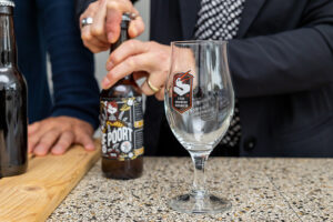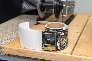 Ze etiketteren zelf. “Net zo makkelijk, hier in de keuken van ons woonhuis. Het is best bewerkelijk allemaal. Gelukkig hebben we een grote opslag in Oirschot. Hier staat ook wel wat voorraad, maar we kunnen moeilijk de hele huiskamer volzetten met bier. Hoewel, dat heeft misschien ook wel weer wat, haha.”