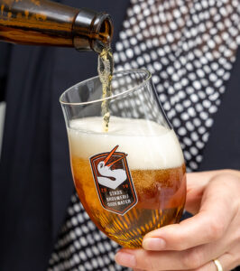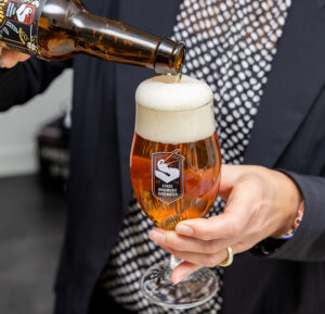 Frans is uiteindelijk andere dingen gaan doen en hij heeft het glas aan mijn partner Virginie overgegeven. Virginie komt uit het mooie Oirschot, uit de horeca en ze heeft zelfs een eigen kroeg gehad. Het mooie is dat zij de eigenaar kent van Brouwerij De Oirsprong, bekend van het De Kroon-bier. We zijn vervolgens in contact gekomen met de brouwer daar met de vraag: kun jij voor ons 4000 liter brouwen? Je begrijpt, hier hebben we uiteindelijk ’t Swaert laten brouwen en jawel, Stadsbrouwerij Oudewater was een feit.”