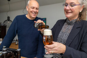 De voorliefde voor bier verbinden aan de liefde voor je stad. Arie Mesker uit Oudewater wist dit voor elkaar te krijgen, in 2019 zette hij er zelfs een stadsbrouwerij voor op. “We etiketteren zelf. Net zo gemakkelijk, hier in de keuken van ons woonhuis.”