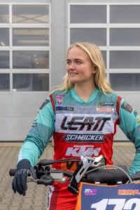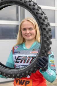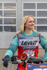 “Vanaf mijn zesde, zevende jaar begon ik aan wedstrijden mee te doen. Tussen de jongens, want zo heel veel meiden waren er niet. Vanaf dat moment groeide ik alleen maar door en op mijn 15de reed ik mijn eerste WK in Italië, in 2018 was dat. Tja, zo’n moment vergeet je natuurlijk niet snel meer. Ik was echt wel gespannen, je weet namelijk niet wat je moet verwachten. Al op jonge leeftijd was ik de jongens de baas, maar nu wordt dat lastiger, hoor. Ik houd mijn 18-jarige broertje, die ook op hoog niveau rijdt, bijvoorbeeld niet meer bij. Er komen gelukkig steeds meer jonge meiden bij die crossen, wat goed is voor de sport.”