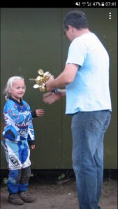 “Er van kunnen leven is lastig, zeker voor de dames. Wij blijven qua verdiensten toch achter op de heren, ja ook op mijn broertje. Maar, ik heb echt een goed contract voor dit jaar. Ik rijd sinds dit seizoen voor een Duits team, Schmicker Racing-KTM, op een 250 cc viertakt. Daarnaast heb ik een goede hoofdsponsor, hier uit Nijverdal. Maar goed, mijn papa is en blijft uiteindelijk de grootste sponsor, ook als je ziet hoeveel tijd en moeite hij en mijn moeder erin steken. Dat doen ze al toen ik nog een klein meisje was, dat is helemaal super.