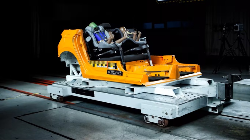 Bij de botsproef met de Chipolino Olympys i-Size tegen de rijrichting in breekt de zitting los van de basis, waardoor de 11 kilogram zware dummy en de zitting naar voren worden geslingerd. Ook bij de Reecle 360 komt de zitting los van de basis als het stoeltje tegen de rijrichting in is bevestigd. Hoewel het bovenste deel van de zitting via de top-tether met de auto verbonden blijft, slingert de dummy door de auto. Het risico is groot dat het kind tegen de autodeur of de voorstoel van de auto botst en ernstig letsel oploopt.
